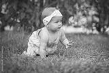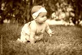 Baby crawling on all fours in grass, Cute baby girl crawling on ground in park outdoors