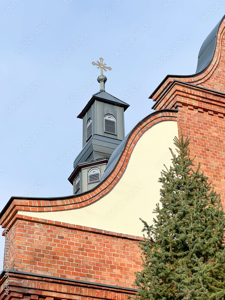The tower with the cross on the church of St. Francis of Assisi in Kalety Miotek in Poland after renovation