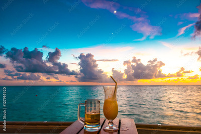 Beautiful tropical Maldives resort hotel with beach and blue wat