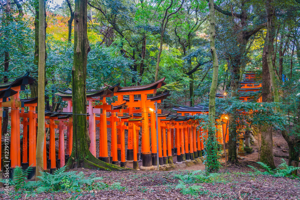 Red Tori Gate at Fushimi Inari Shrine Temple in Kyoto, Japan