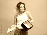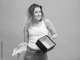 Sad woman holding gift box