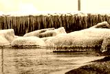 Ice formations on Kew Beach in Toronto shot in mid winter room for text