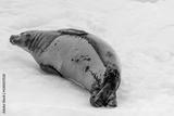 Close-up of a Weddell seal -Leptonychotes weddellii- resting on a small iceberg near Danco Island on the Antarctic peninsula