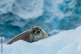 Close-up of a Weddell seal -Leptonychotes weddellii- resting on a small iceberg near Danco Island on the Antarctic peninsula