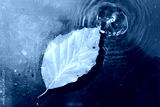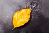 Bright colourful autumn leaf floating in water