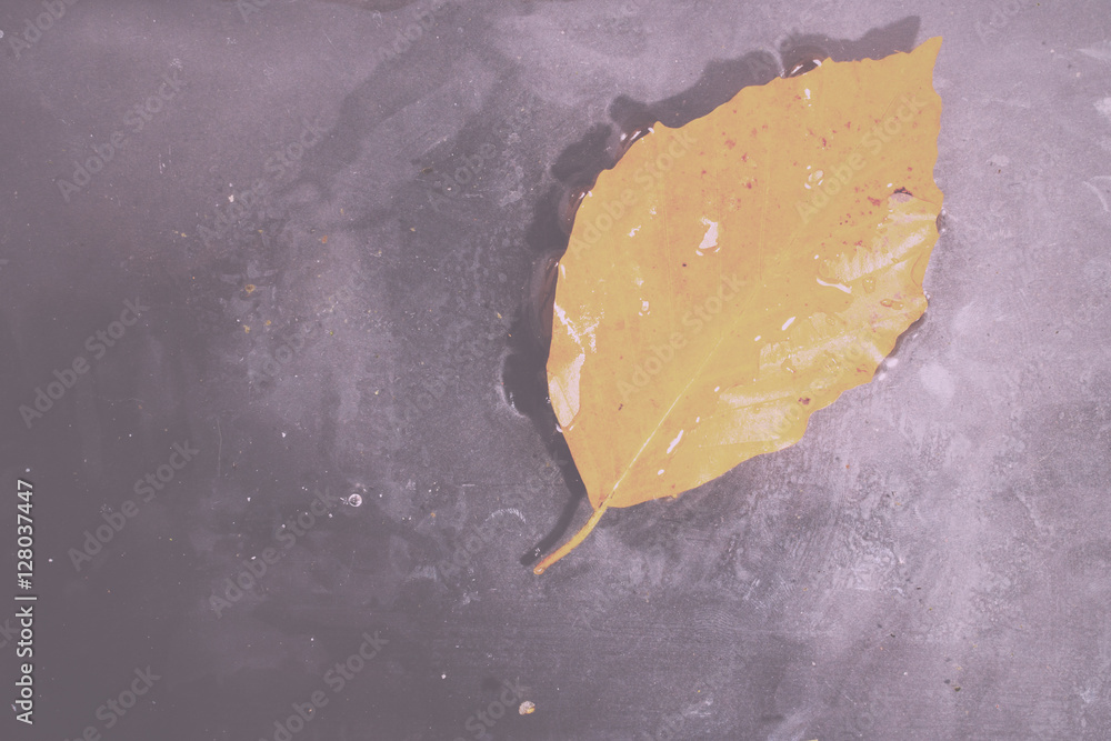 Bright colourful autumn leaf floating in water Vintage Retro Fil