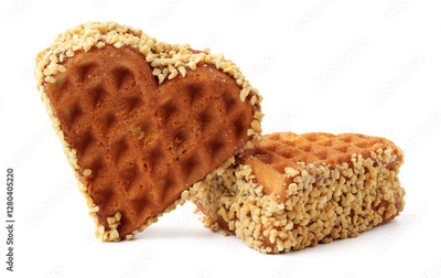 Delicious heart-shaped waffle treats covered in crushed nuts perfect for sharing at any gathering