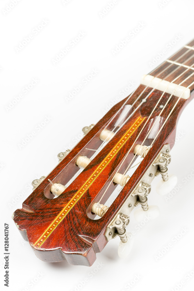 Acoustic guitar head over white background