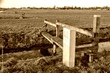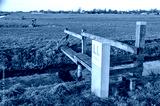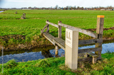 Simple wooden bridges across ditches in the polder as part of a hiking trail, near Rotterdam, The Netherlands