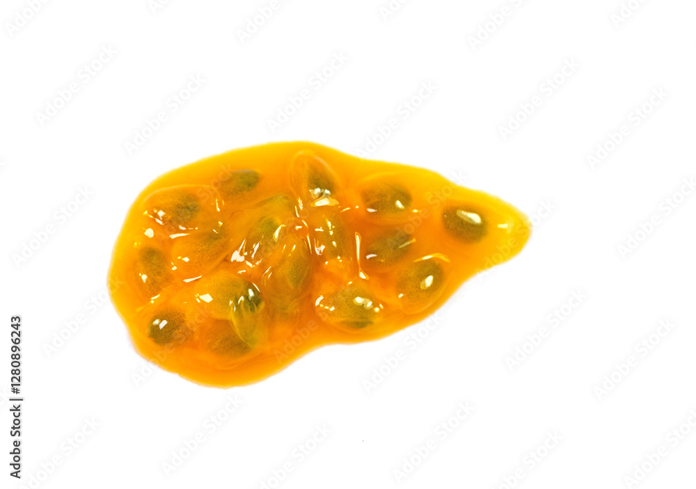 Passionsfrucht, Maracuja, Samen vor weißem Hintergrund