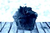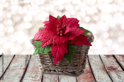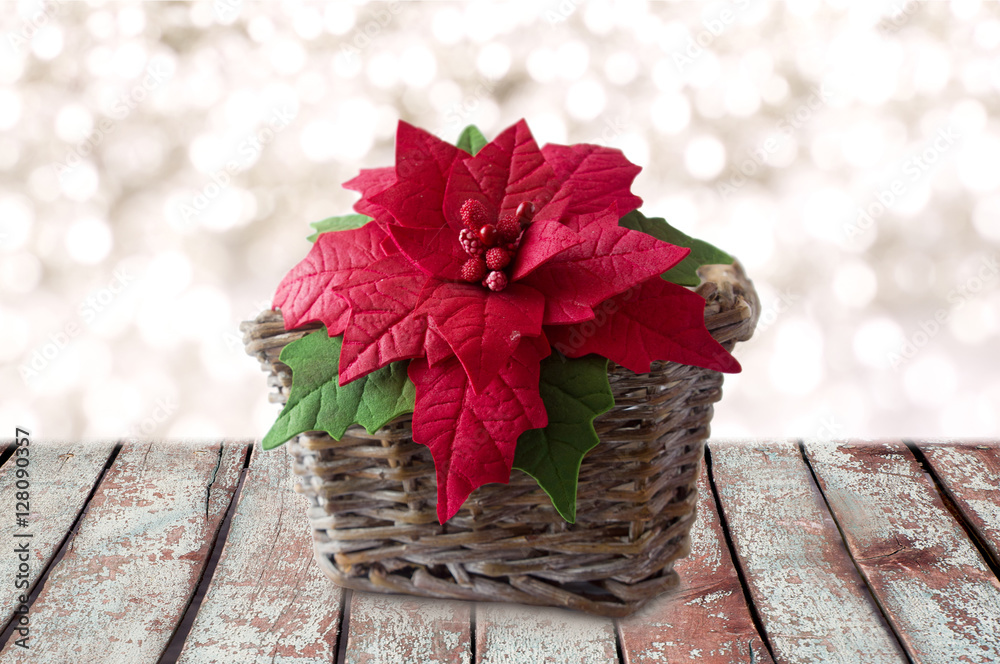 Poinsettia in a basket. Handmade flower fabric foam-iran. Artificial flowers made from sponge rubber.