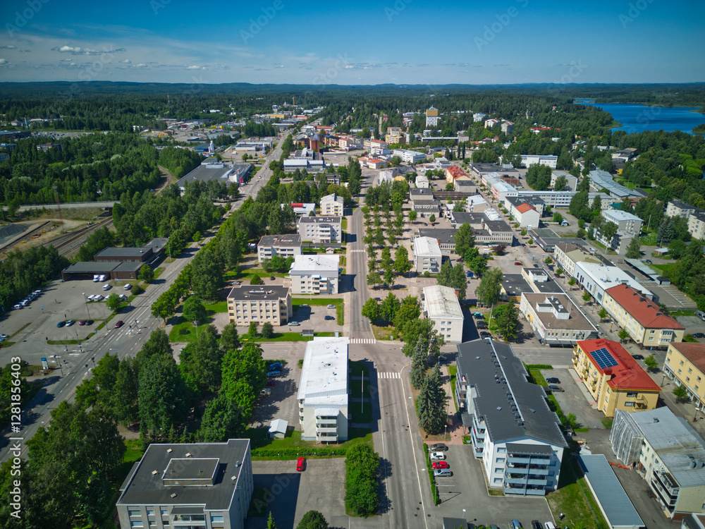 Varkaus city in Pohjois-Savo region in eastern Finland. Aerial views from city centre 2024