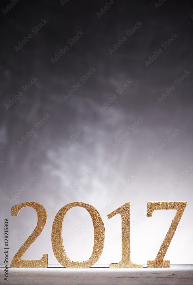 Golden new year in 2017 numbers over gray