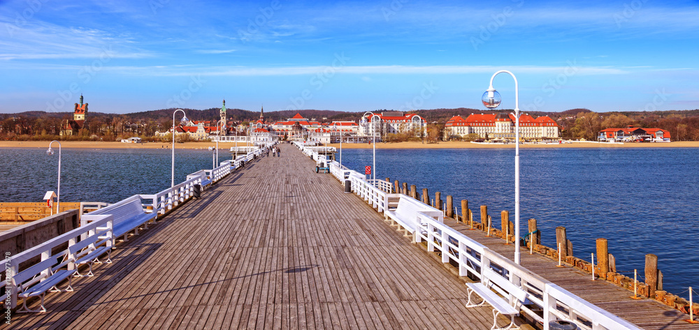 View from the pier on the beautiful architecture of Sopot, Poland.