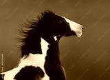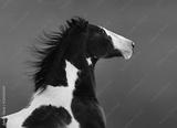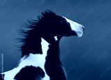 American Paint horse. Portrait on dark blue background.