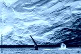 Close-up of the lateral fin of a feeding Humpback Whale -Megaptera novaeangliae- agains the background of a Glacier, near Graham passage and Charlotte Bay on the Antarctic Peninsula