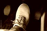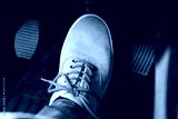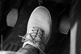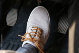 Human foot pressing car pedal