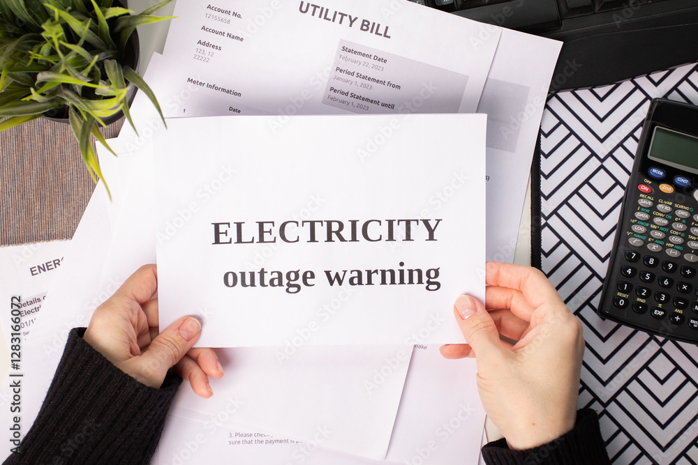 Electricity Outage Warning Notice, power service disconnection notice with debt summary, expenses and final account warning