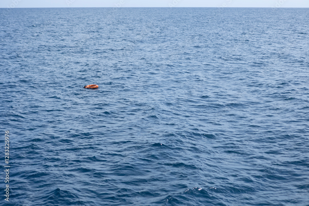 Orange lifebuoy floating on calm blue sea in marsa alam, egypt