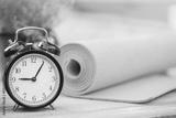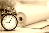 Time for exercising clock and yoga mat, outdoor