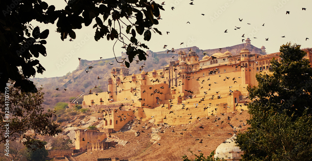 Panorama of Amber Fort in Jaipur city of Rajasthan, India