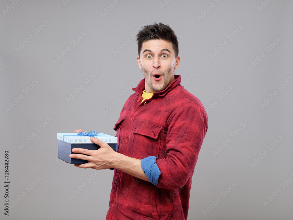 Happy young man with a gift