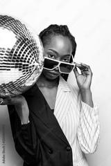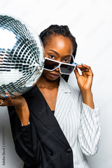Beautiful african woman with afro pigtails hairstyle and stylish clothes - Portrait of young black girl in studio