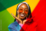 Beautiful african woman with afro pigtails hairstyle and stylish clothes - Portrait of young black girl in studio