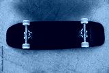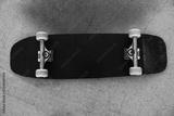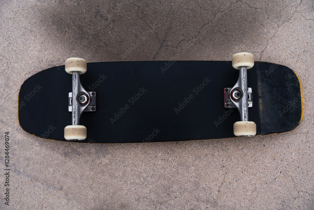 Close-up view of a skateboard at city skate park