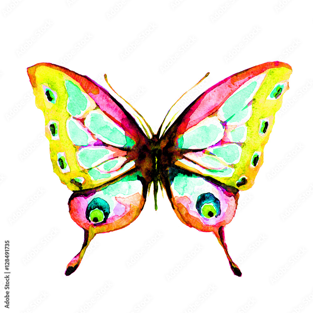 butterfly,watercolor, isolated on a white