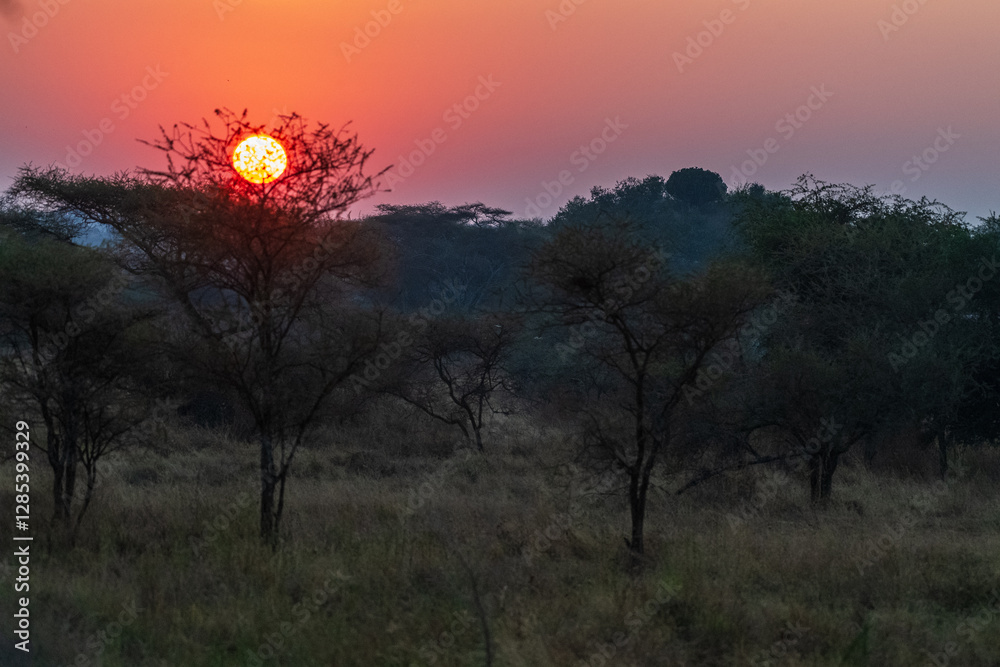 Telephoto of a sunrise over the Serengeti, Tanzania