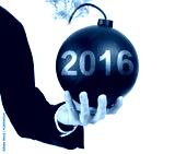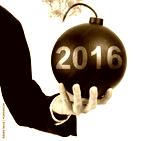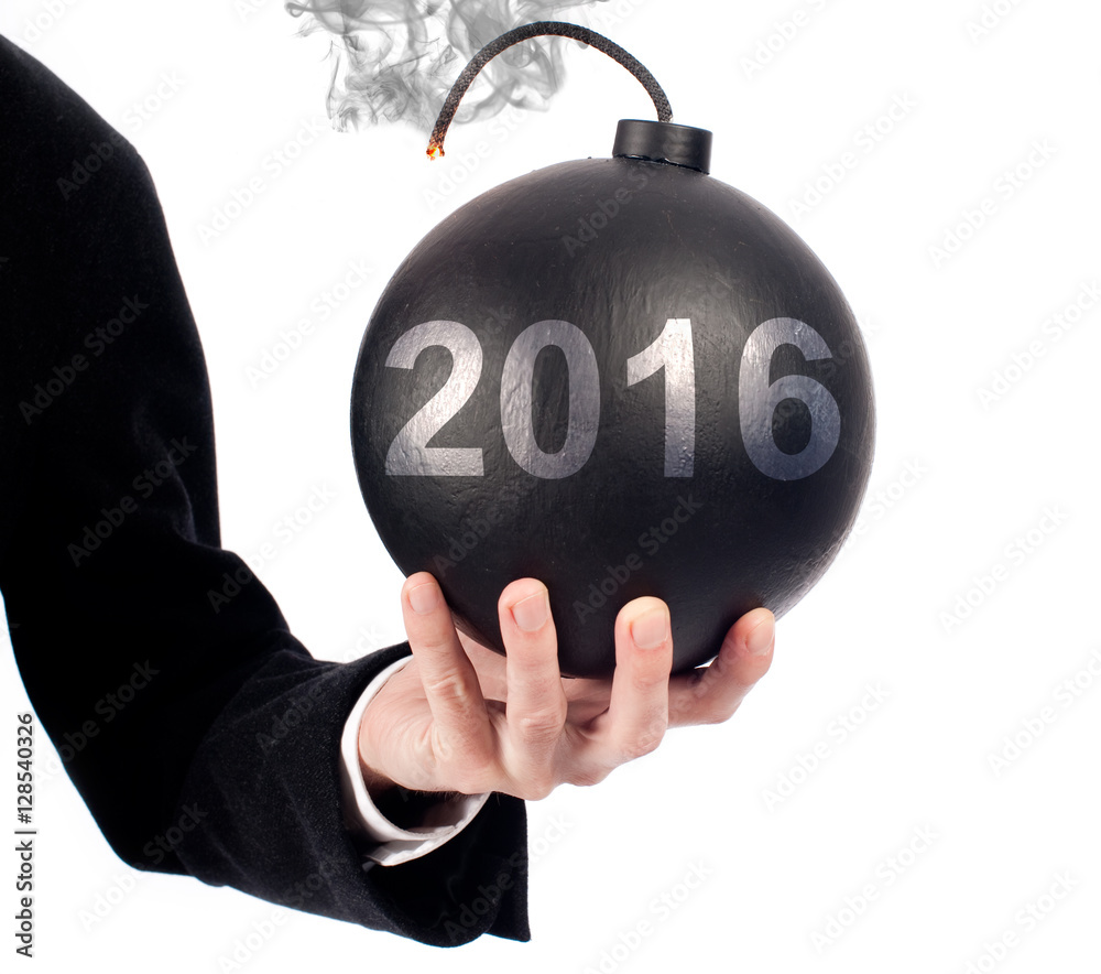 businessman hand holding an old-fashioned bomb. Start of year 2017 concept