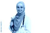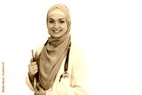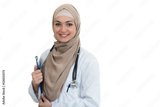 Closeup portrait of friendly, smiling confident Muslim female doctor celebrating success