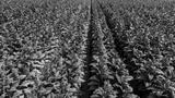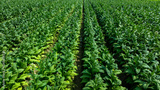 Tobacco fields plantation farmland, Green leaves tobacco plant in the field, Tobacco field in rural agricultural crop, Aerial view