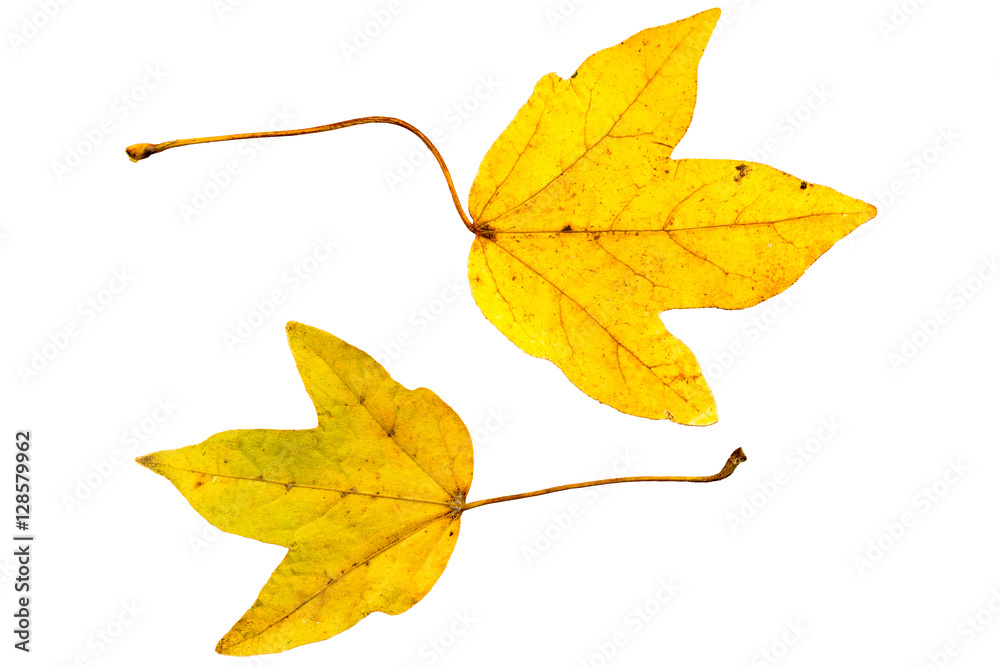 Close-up Photograph of a withering autumnal fig tree leaves isol