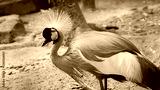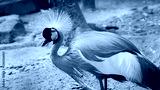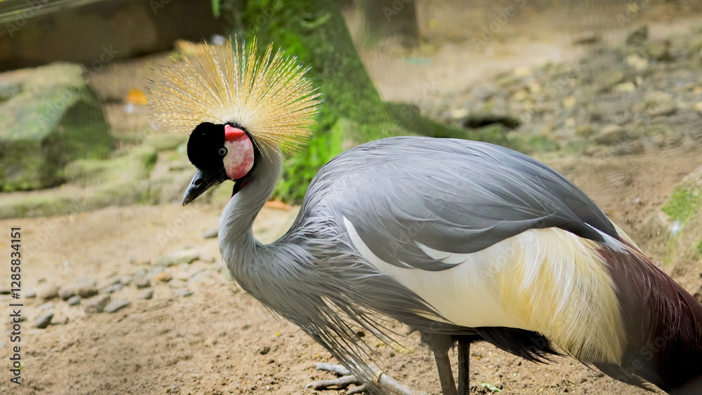 Crowned crane activity with closed and blurred background in Ragunan National Park