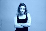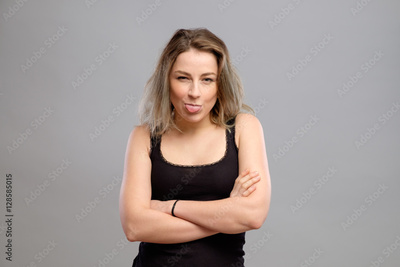 Girl showing tongue closeup portrait