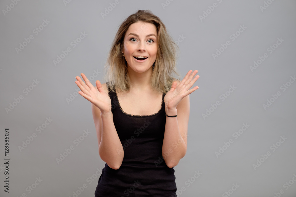 Surprised happy beautiful woman isolated
