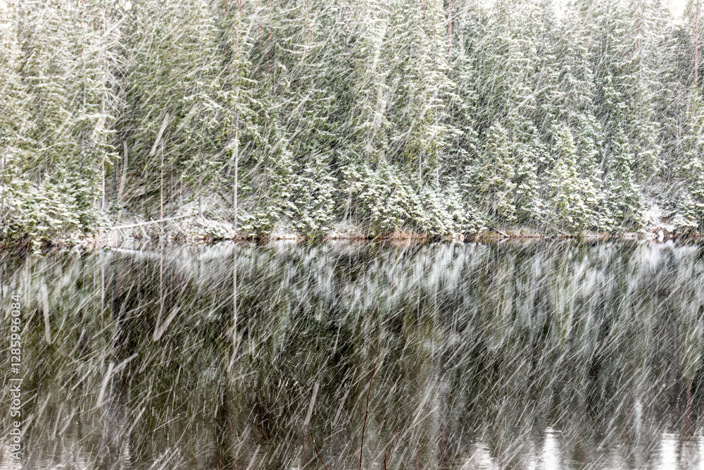 abstract photography with falling snow texture, blurred picture during snowfall, cool texture