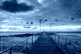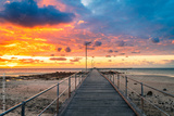 Dramatic sunset over Moonta Bay Jetty with people walking along