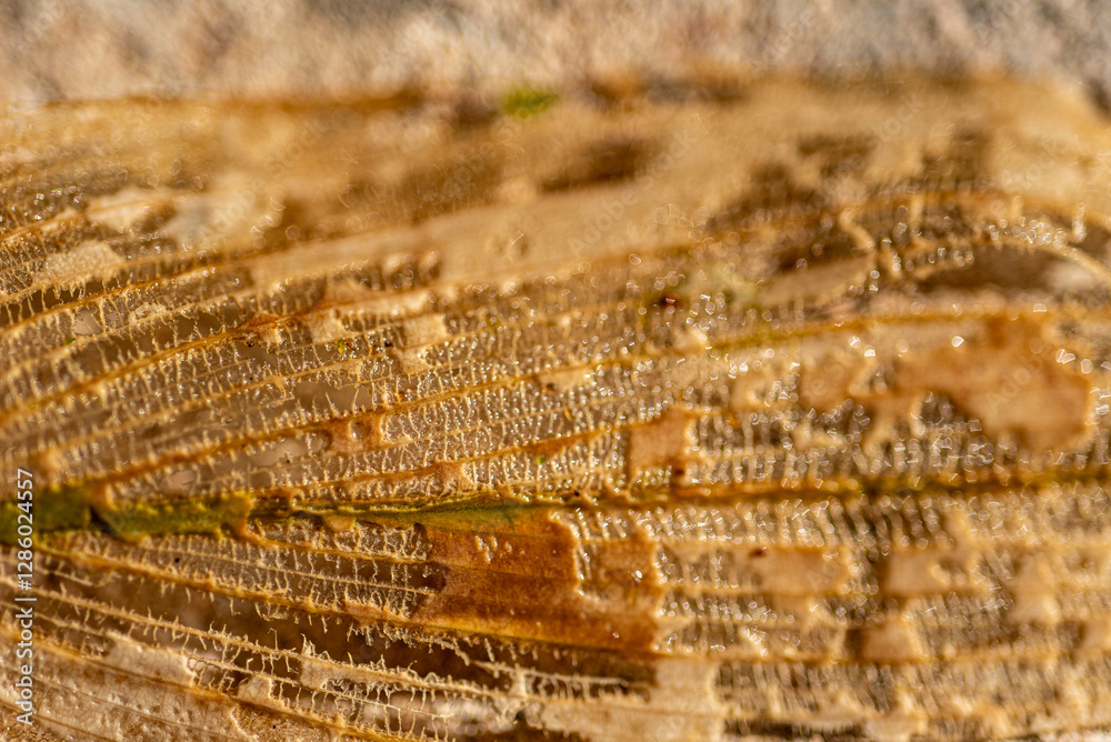 abstract close-up view of leaf texture, water plant in backlight, abstract structure