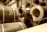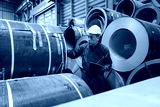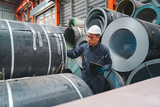 Smart and confident Asian male Professional expertise engineering is using tablet to check the problem of Plate rolling metal sheet with order of factory, Rolling machine quality safety control.