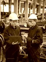 Professional engineering manager is discussing or complaining about the quality's error or mistake of Plate rolling order or metal sheet production of his co-worker. Concept of failure in factory.