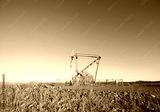 Retro toned picture of an oil pump at sunset
