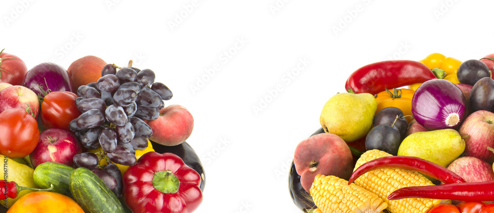 Collection fruits and vegetables isolated on a white background.
