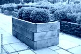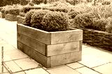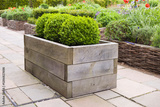 Wooden oak sleeper planter in a formal garden, UK