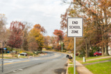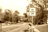 Public End School Zone sign on road