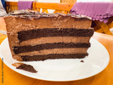 Decadent chocolate cake slice with rich layers of creamy frosting and moist texture, perfect for dessert lovers and celebrations, indulgent dessert concept