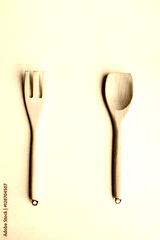 Wooden Spoon Fork on Natural background Healthy organic clean food concept