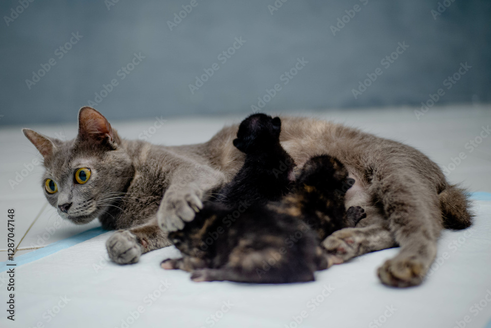 Asian grey kittens. The importance of sterilizing cats to prevent pregnancy.